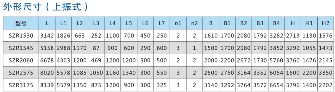 SZR系列熱礦振動篩均為座式安裝。采用雙軸激振器,電機不參振;由兩臺電機外拖動激振器作反向自同步旋轉,使篩體沿直線方向作周期性往復運動,從而達到篩分目的。