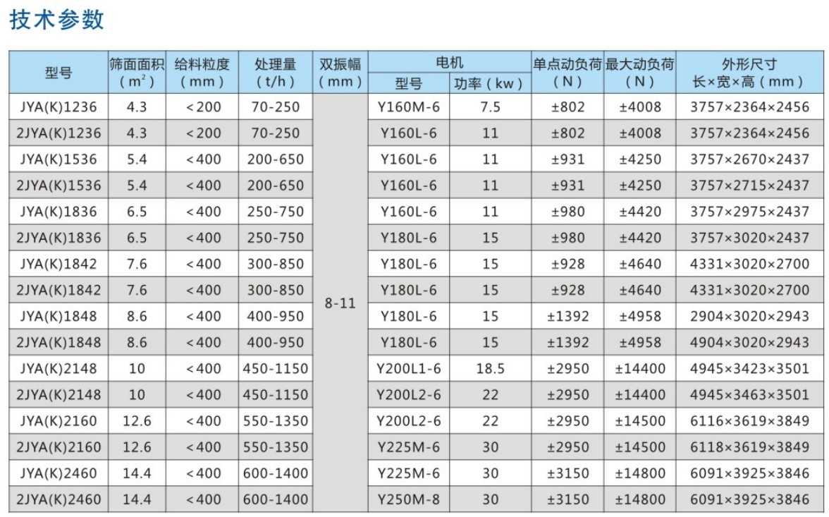 JYA(K)型圓振篩由振動源、篩體、篩網、減振裝置和底托組成,篩機側板采用優質鋼板制作而成,側板與橫梁、激振器底座采用高強度螺栓或環槽鉚釘連接,結構合理,堅固耐用。